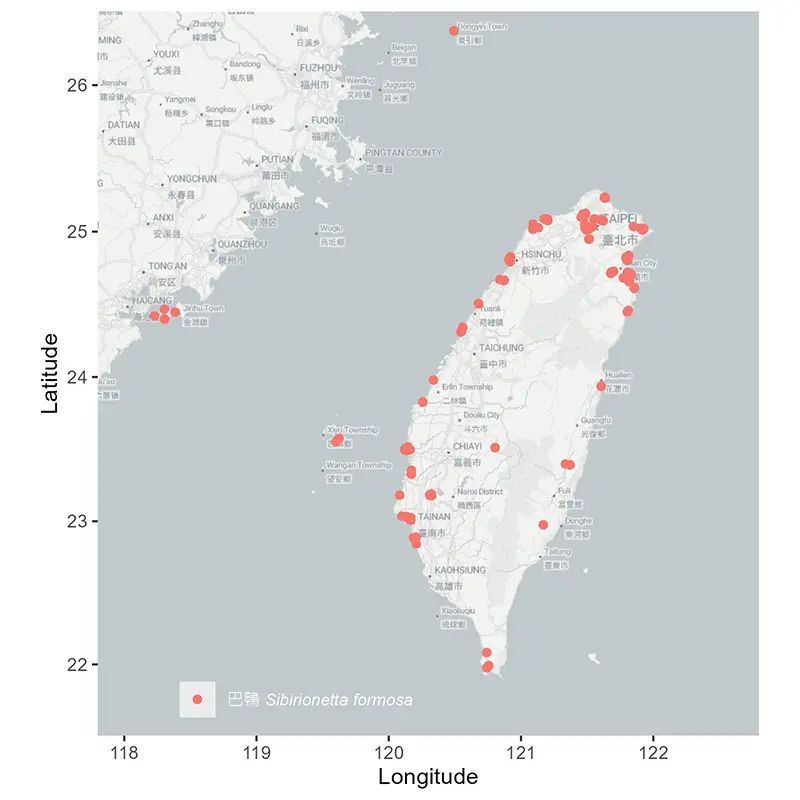 巴鴨在台灣屬稀有冬候鳥,主要於冬季零星紀錄於沿海濕