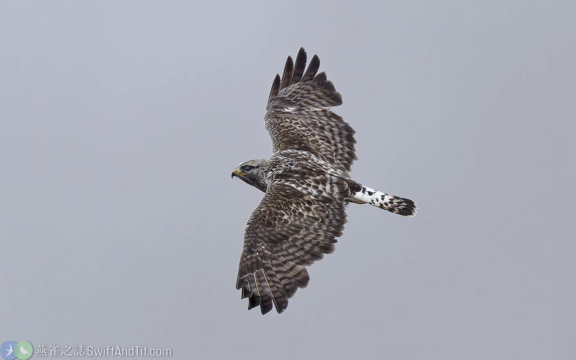 - 東方鵟 (Eastern Buzzard):東方鵟體型較小,尾羽不白,無明顯橫紋,末端也沒有明顯黑帶。