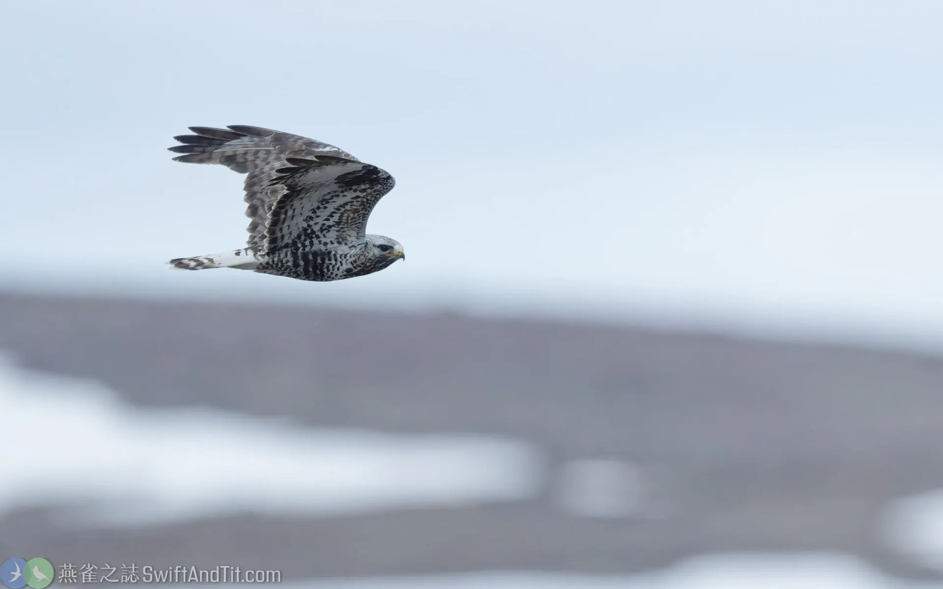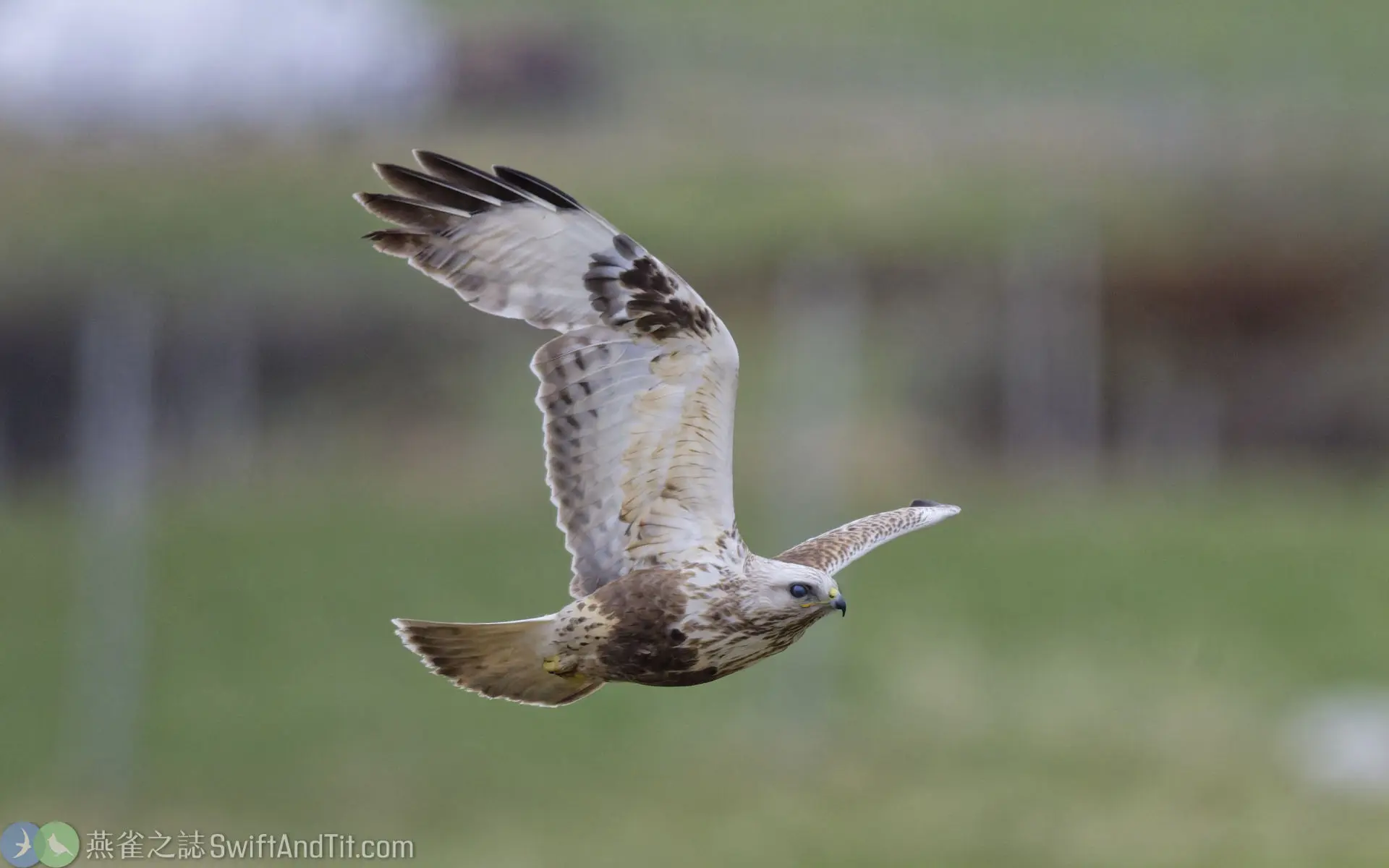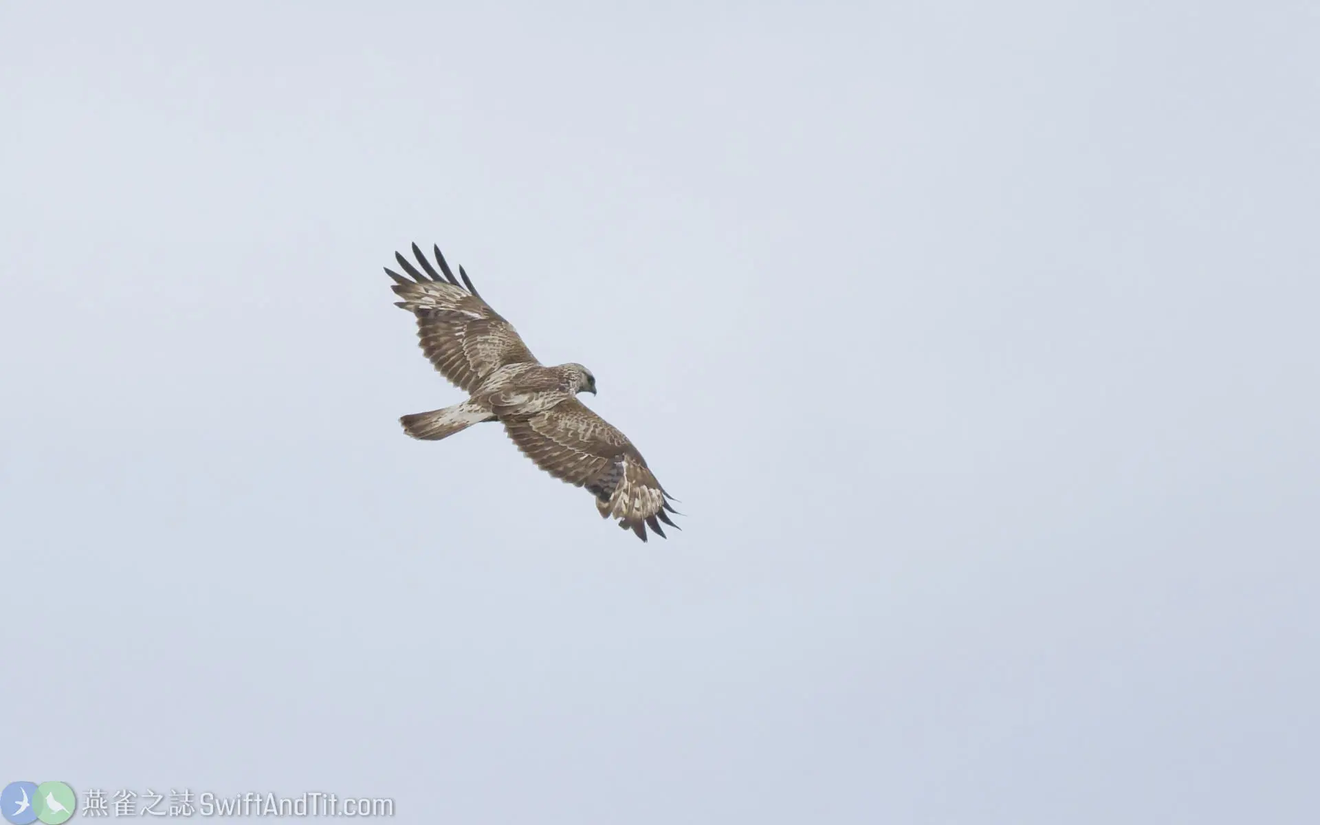 - 大鵟 (Upland Buzzard):大鵟體型較大,翅背面有明顯白色翼窗,尾羽有多條細橫紋,尾羽末端沒有明顯黑帶。