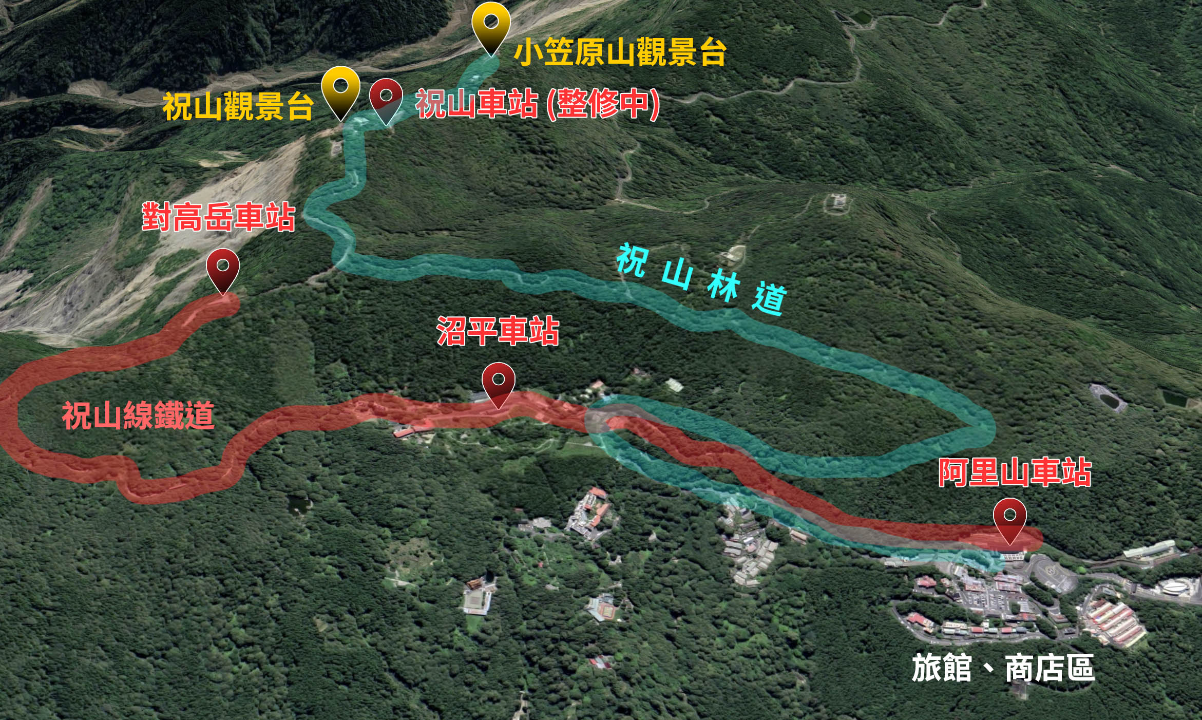 要看日出就得搭乘祝山線的小火車,原本火車可以開到台灣海拔最高的火車站–祝山站,但祝山站從2020年10月14日起,目前正在進行改建工程,因此要看日出的遊客都只能搭到前一站:【對高岳站】下車再步行至更高的祝山或小笠原山。