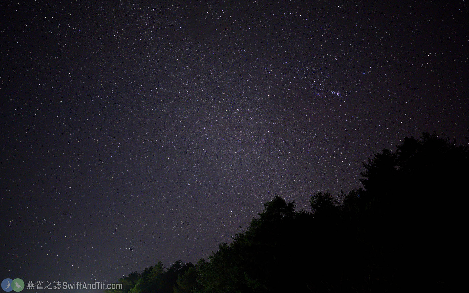 這天夜裡是個大晴天,抬頭仰望星空,由獵戶座的參宿四、大犬座的天狼星、和小犬座的南河三所組成的冬季大三角剛從森林後方升起,而穿過冬季大三角那條淡淡的白色正是銀河的位置。
